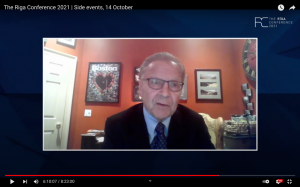 Professor Thomas Patterson introduced AIWS City as a practical model for the Age of Global Enlightenment and discuss about it with Moderator Zaneta Ozolina at the session “REMAKING THE WORLD – THE SECOND AGE OF ENLIGHTENMENT. THE UNITED NATIONS 2045”, the Riga Conference 2021, October 14, 2021.